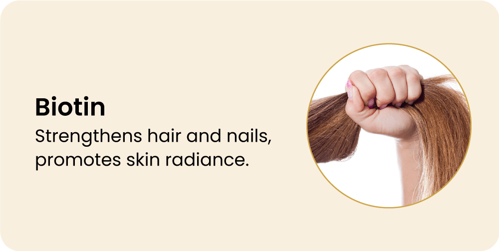 - البيوتين: يقوي الشعر والأظافر، ويعزز إشراق البشرة.