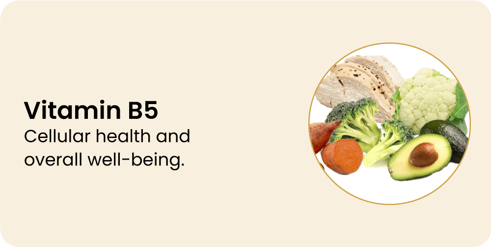 - فيتامين B5: يحافظ على رطوبة البشرة.