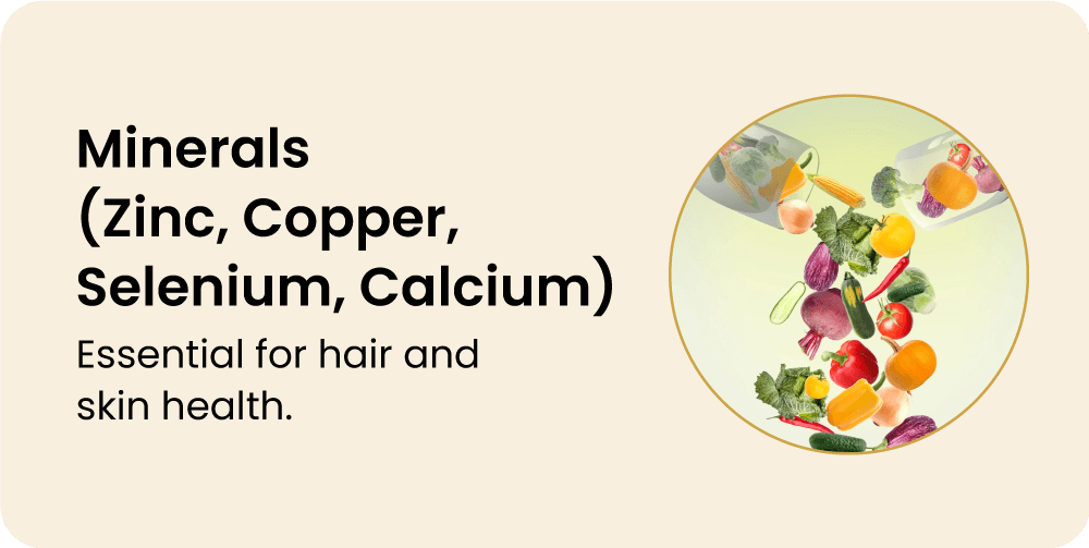 - المعادن (الزنك، النحاس، السيلينيوم، الكالسيوم):