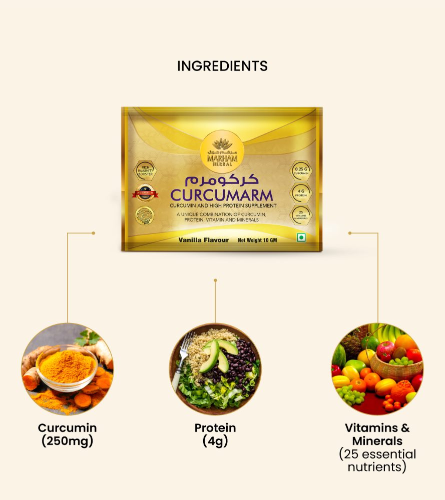 • CURCUMARM unique combination of Curcumin, Protein, Vitamins, and Minerals
