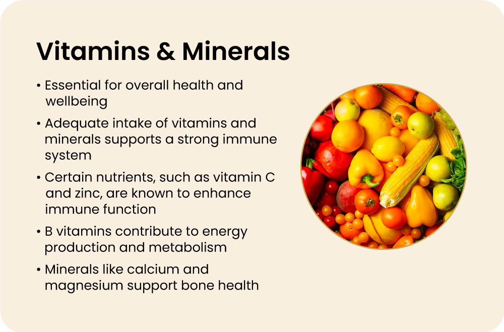 - Vitamins & Minerals: 25 essential nutrients.